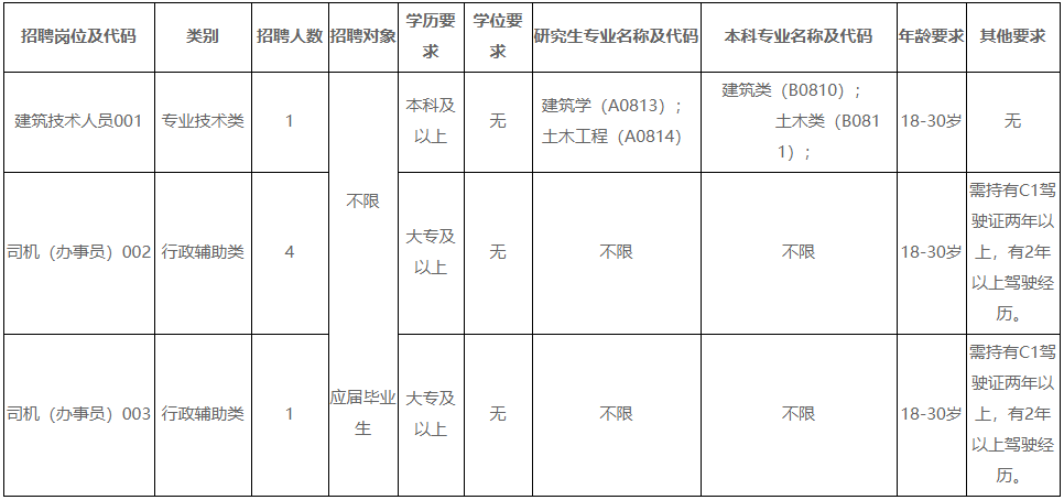 3.崗位為司機(jī)(辦事員),崗位代碼003,招聘對(duì)象為普通高等院校2022年大學(xué)專(zhuān)科畢業(yè)應(yīng)屆畢業(yè)生。