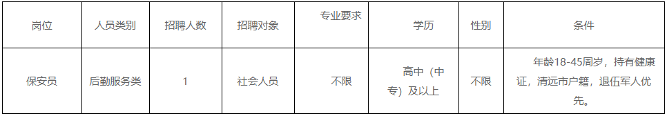 清遠(yuǎn)市清城區(qū)機(jī)關(guān)事務(wù)管理局因工作需要,根據(jù)《關(guān)于印發(fā)<清遠(yuǎn)市清城區(qū)機(jī)關(guān)事業(yè)單位專項(xiàng)工作聘員、合同制聘員以及后勤服務(wù)類人員管理辦法>的通知》(城區(qū)人社[2022]20號)文件精神,面向社會公開招聘后勤服務(wù)類人員1名,現(xiàn)將有關(guān)事宜公告如下:
